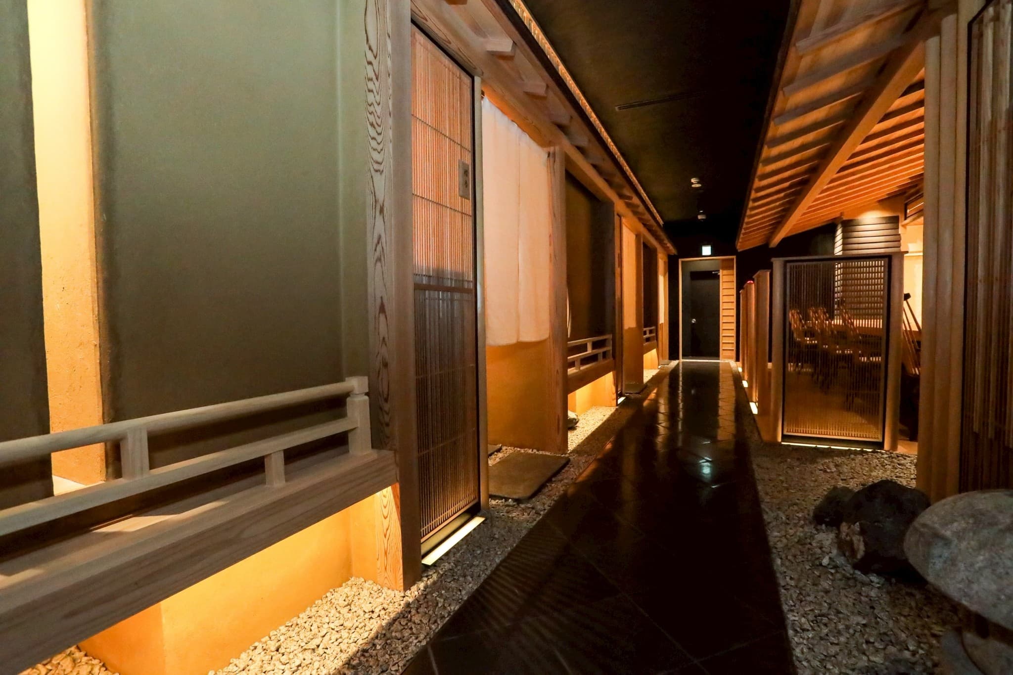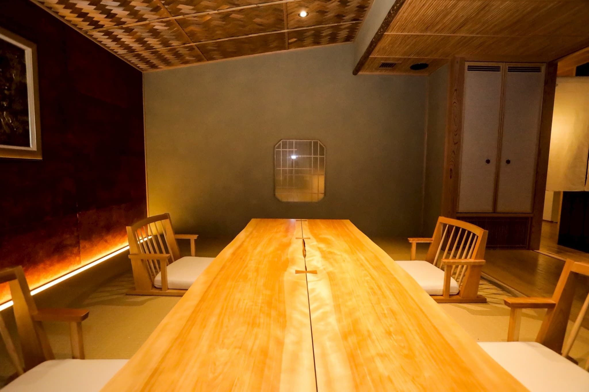 静謐な回廊を抜けた先に広がる、白木のカウンター。